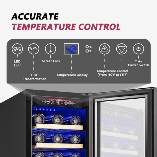 4.5 CU.FT Wine Cooler Refrigerator, Small Built-in Wine Fridge for Red, White and Champagne, Mini Fridge with Adjust Temperature, Black